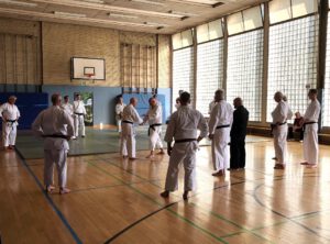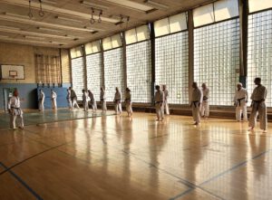 Im Vorfeld dieser Prüfung wurde für alle Prüflinge am 12.04.2025 in der Sporthalle der Johannesschule in Köln – Höhenhaus ein Dan – Training angeboten. 16 Dan – Anwärter haben das Angebot wahrgenommen. Im Rahmen dieses Trainings bekamen die Prüflinge von den anwesenden A – Prüfern wertvolle Tipps zur Ausführung von Kata- Grundschul- und Selbstverteidigungstechniken.